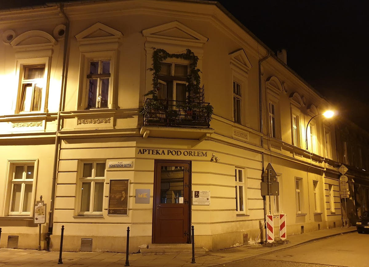 Аптека під орлом (Eagle Pharmacy) в Кракові – це єдина аптека, яка функціонувала на території Краківського гетто, допомагаючи євреям та співпрацюючи з підпіллям. Для людей вона була не лише місцем, де була можливість придбати лікарські препарати. Eagle Pharmacy зв’язувала їх із зовнішнім світом, надавши можливість побачитись з кимось, не првернувши лішньої уваги. Рядом з аптекою збиралась еліта гетто і вела жваві інтелектуальні дискусії.