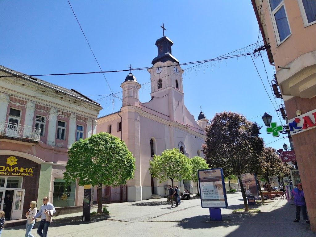 Католицький храм Св. Юрія – один з найдавніших католицьких храмів Ужгорода, який розташований по вулиці Волошина, 9. Витончений костел вже протягом кількох століть прикрашає історичний центр міста і заслужено носить статус однієї з найяскравіших його пам’яток. Появі храму ужгородці зобов’язані колишньому власникові їх міста – графу Другету, який у 1610 р зруйнував лютеранський храм, який знаходився неподалік від старовинного замку, і побудував на його місці костел. Собор будувався в досить швидкому темпі, але після того, як Ужгород змінив господаря, будівництво храму зупинилося. Тривалий час недобудований собор був предметом спору католиків і реформатів, поки на початку 18 ст. не перетворився на руїни.