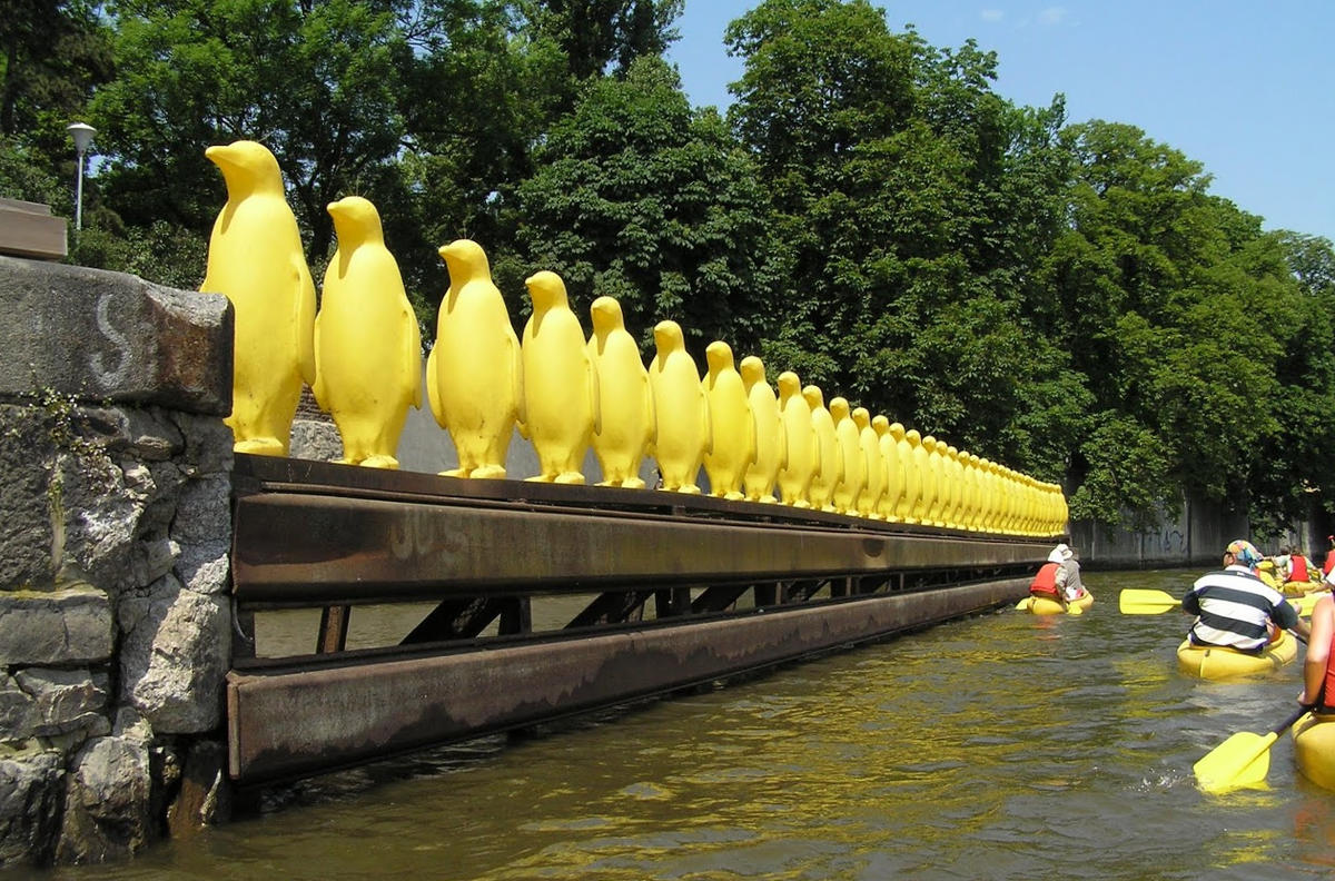 Над колесом через канал перекинутий вузький місток, обвішаний різнокаліберними замками. Сюди приїжджають празькі молодята, щоб скріпити навіки свою любов і закинути ключ на дно.