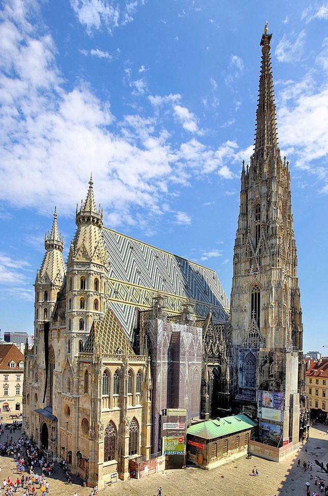 У 1137 році на місці сучасного собору Святого Стефана була закладена найперша церква в цих місцях. Через 10 років в 1147 році вона була побудована за допомогою Леопольда IV і єпископа Пассау. Приблизно через 100 років знадобилося розширити храм (одна західна стіна в романському стилі з цього будівництва збереглася до нашого часу), але незабаром після цього в 1258 році церква, на жаль, згоріла. Через 5 років на цьому ж місці була знову побудована і освячена нова церква. Поступово її приміщення росло і розширювалося, в цей час були побудовані знамениті Альбертові хори, а закінчені всі будівельні роботи були лише через 77 років.
