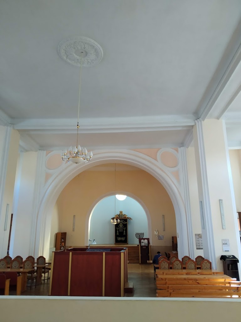 Кам’яна синагога була побудована в стилі неоренесансу, чималий вплив на його вигляд мав і мавританський стиль. Головний зал здатний був умістити до 300 вірян (сидячі місця). Спочатку кути синагоги вінчали чотири башти з куполами, прикрашені зірками Давида. Вхід у синагогу був із західного боку. У головному залі по периметру були спеціально відведені для жінок галереї.