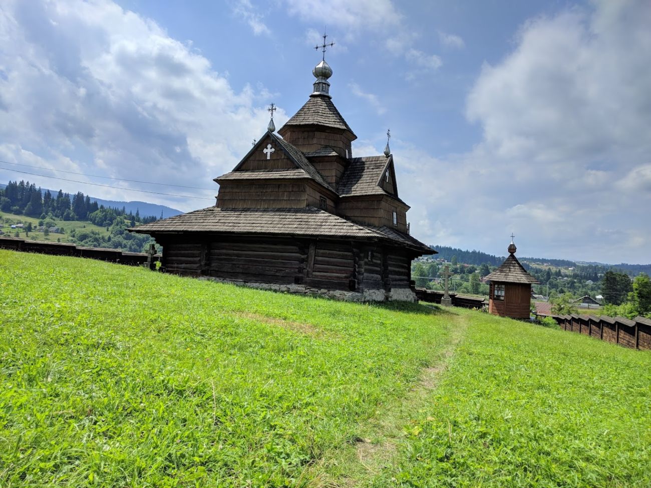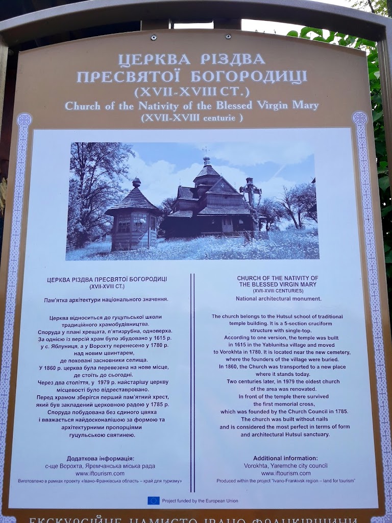 Церква Різдва Богородиці розташована у дивовижному місці – на вершині пагорба, звідки вся Ворохта помітна як на долоні.
