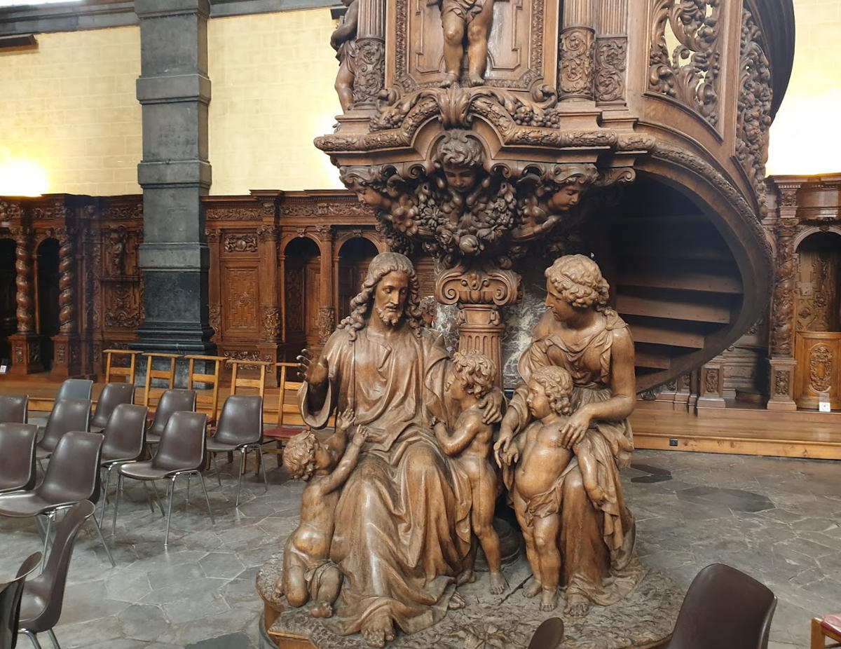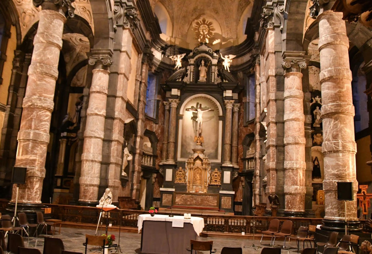 За кілька кроків від Музею художника Фелісьєна Ропса, на перетині вулиць дю Колеж і де Сен-Лу, можна побачити величну будівлю єзуїтської церкви, присвяченої святому Лупу. Шарль Бодлер описував цю сакральну будівлю, затиснуту з усіх боків оточуючими будинками, як похмурий «катафалк». Саме на щаблях цієї церкви в 1866 році його розбив параліч, так що в якомусь сенсі Бодлер виявився пророком при описі храму Сен-Лу.