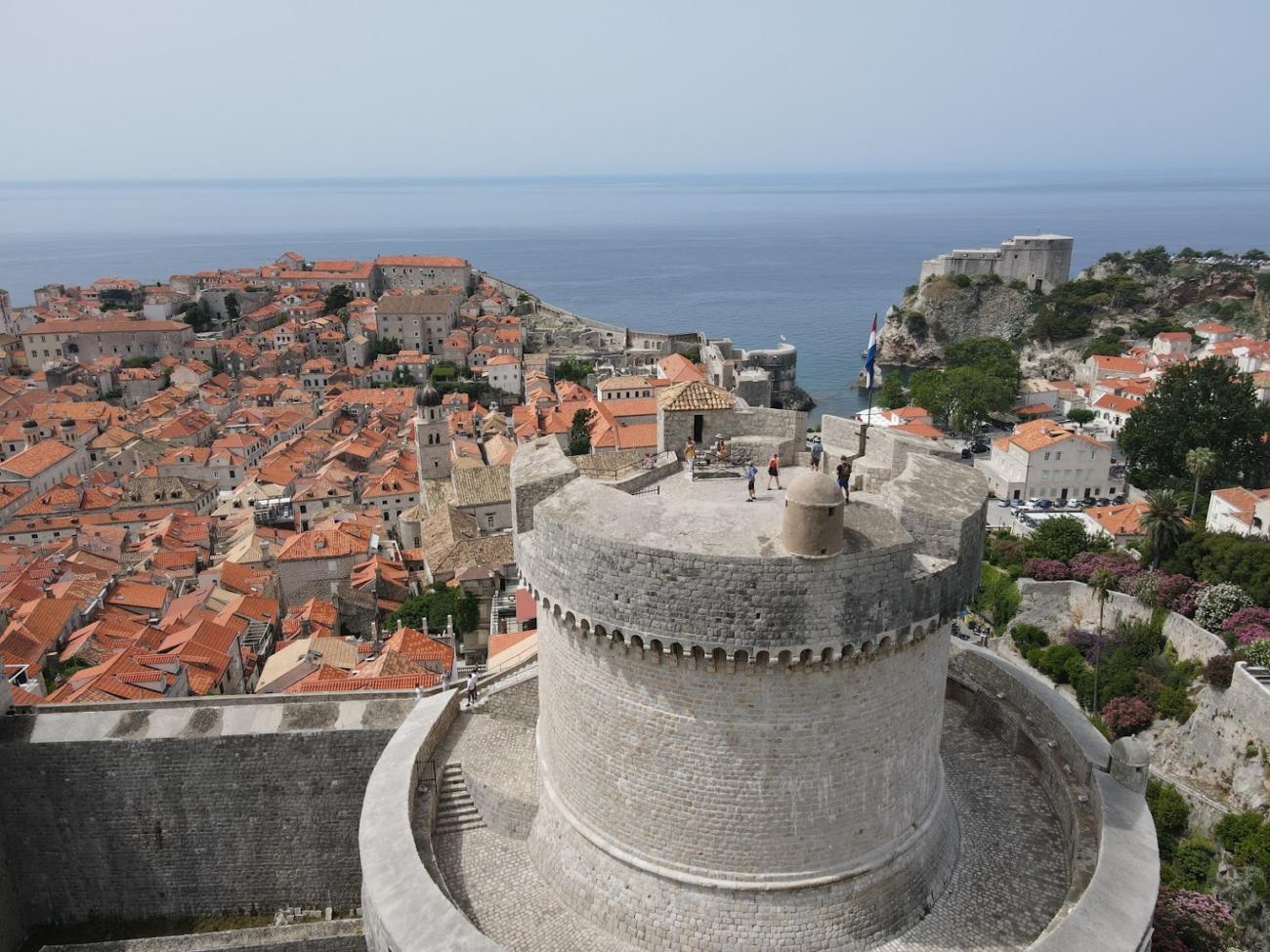 З вежі Мінчета, найвищої точки Дубровника, відкривається чудовий вид на місто, що розташувалося з одного боку між крутими схилами гір і відкритим морем – з іншого.
