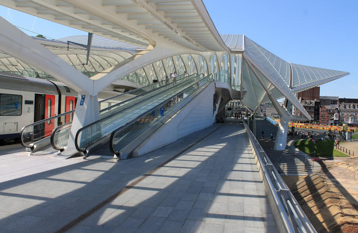 Льєзький вокзал зведений з бетону, сталі і скла. Домінантою споруди є вигнута арка, що вражає своєю пластичної формою. Під нею знаходиться 9 залізничних шляхів. Дах створений з куленепробивного скла, що захищає від ультрафіолетових променів. Навіть якщо таке скло якимось чином буде пошкоджено, воно не осиплеться вниз, а залишиться на плівці, натягнутій між опорами.